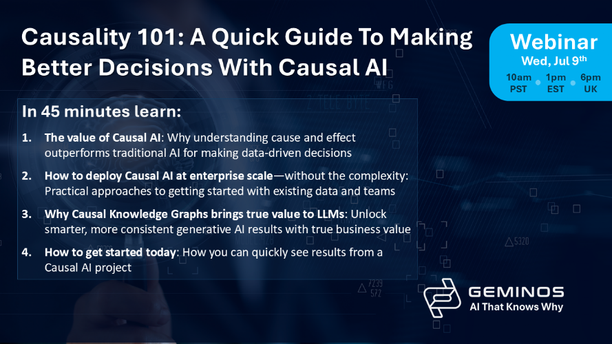 Netflix, McKinsey and Meta aren’t keeping it a secret – some of their most important decisions are increasingly being powered by Causal AI. These companies, along with many others, have invested in Causal AI to overcome one of AI’s most persistent challenges: understanding why something happens. Causal AI brings cause-and-effect reasoning to your AI strategy, helping teams identify the true drivers behind outcomes—not just patterns and correlations. The result? Smarter, more reliable decisions that teams can act on with confidence. Until recently, Causal AI was complex and difficult for most companies to deploy better decision-making at scale. That is no longer the case. What you’ll learn:- The value of Causal AI: Why understanding cause and effect outperforms traditional AI for making data-driven decisions.